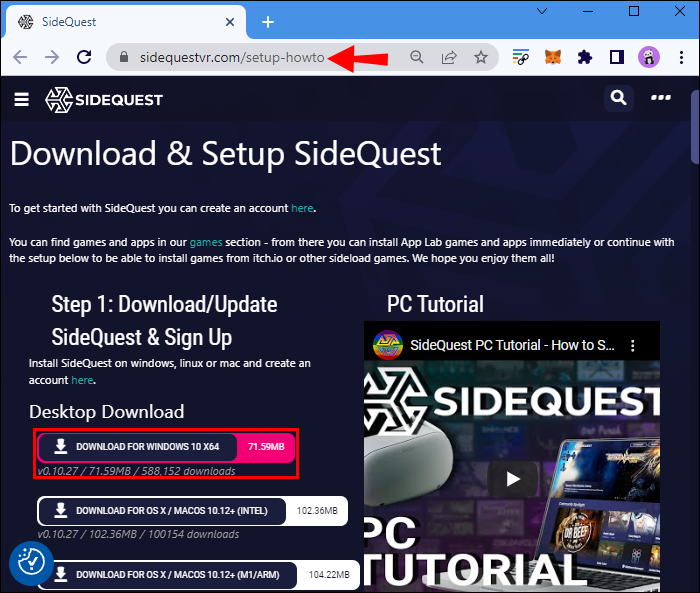 VRChat has extensive support for a large number of PC-compatible VR headsets and accessories including Oculus and SteamVR-compatible headsets such as the HTC Vive series and Valve. At the top-right of SideQuest in the title bar click on BeatOn.